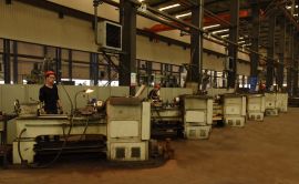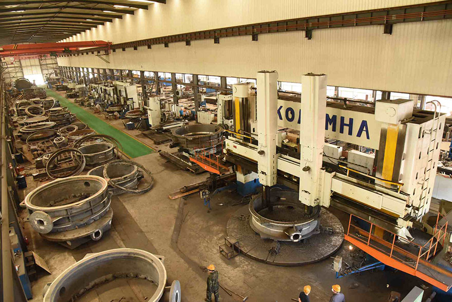 公司擁有車、鏜、銑、鉆、刨、磨等大小機(jī)械加工設(shè)備二百余臺(tái),其中:有CK82800數(shù)控8米立式車床,其最大承重為80噸,最大回轉(zhuǎn)直徑為8m;C5280八米立車,加工直徑8m;CK5240D數(shù)控立車,加工直徑4m;其它2.5m~6.3m(雙柱)立車,已形成立式加工群。大型臥式加工中心,有TK6916B數(shù)控鏜床,最大鏜孔直徑φ800mm,TPX6113臥式銑鏜床、TPX6111B臥式銑鏜床、BFP160-1落地鏜床、T6160鏜床等9臺(tái)。有CKA6150數(shù)控萬(wàn)能銑床,最大加工直徑:500mm,有鉆削直徑達(dá)到∮120mm、∮100mm、∮80mm、∮50mm等搖臂鉆床。另外,還有各種車床、鏜床、銑床、鉆床、磨床等機(jī)械加工設(shè)備一百多臺(tái),可加工最大閥件直徑6m,年機(jī)加能力3萬(wàn)噸