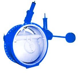 該閥門有橡膠密封及金屬密封兩種,特點是閥瓣有大小兩個,小閥瓣置于大閥瓣中心,關(guān)閉時,大閥瓣迅速回落,在接近全關(guān)的小角度范圍內(nèi)由油缸阻尼,小閥瓣由另一個油缸控制,先快關(guān)后慢關(guān),速度滯后于大閥瓣。該閥可有效防止水泵倒轉(zhuǎn)及過大的水錘壓力。